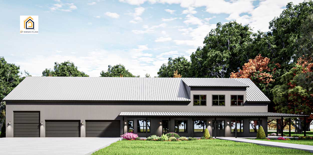 4 Br Large Barndominium Plan with Large Shop